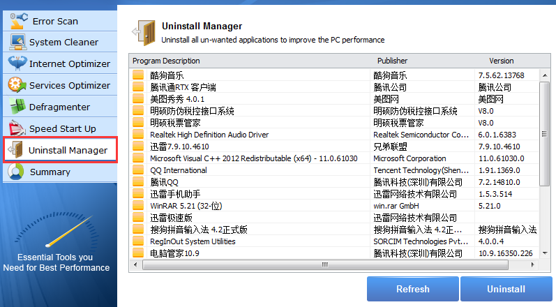 3、“uninstall manager”為卸載刪除,可以刪除電腦中的軟件和應用。
