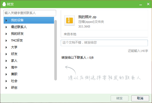 方式二:在WinZip中選擇需要分享的文件,然后右鍵> 發(fā)送所選文件到>發(fā)送給QQ好友。