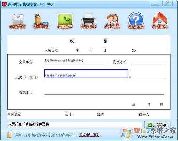 2、通過鼠標(biāo)在收據(jù)上點(diǎn)擊后在編輯框內(nèi)輸入收據(jù)的內(nèi)容