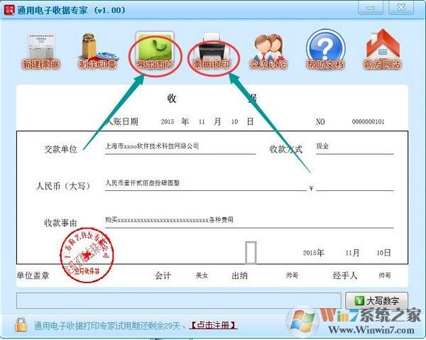 4、編輯好收據(jù)內(nèi)容后您可以導(dǎo)出BMP圖片也可以直接打印