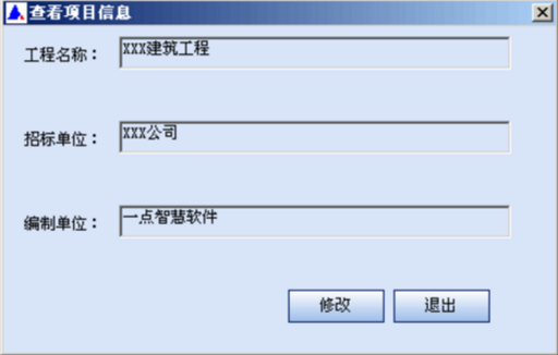 按鈕,軟件會彈出“查看項目信息”界面,在這一界面中可修改工程名稱和招標(biāo)單位名稱。