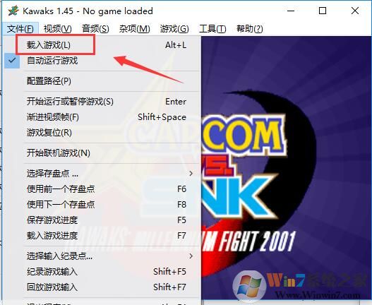 1、雙擊打開WinKawaks.exe,點擊左上角的“文件”,再下來菜單中選擇“載入游戲”