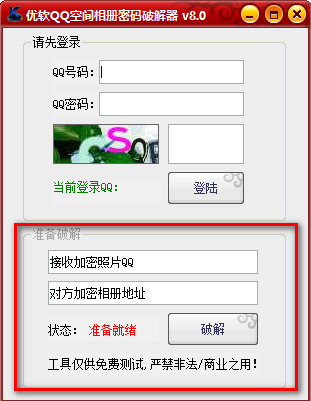 優(yōu)軟QQ空間相冊密碼破解器是一款能夠破解QQ空間加密相冊的軟件,操作簡單,成功率高,登錄QQ將對方空間相冊的地址復制到軟件中,點擊破解即可,趕緊下載,查看男神或者女神的相冊吧!