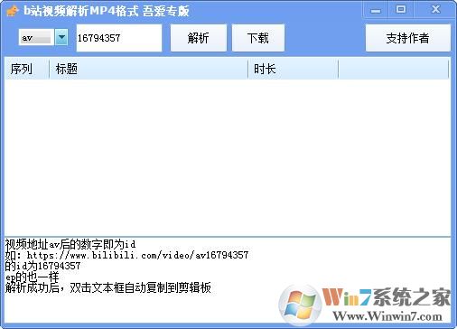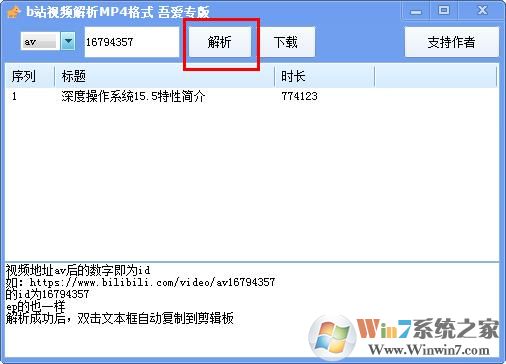 2、找到你想要下載的視頻文件,復(fù)制他的av號(hào),視頻地址av后的數(shù)字即為id,比如https://www.bilibili.com/video/av16794357的id為16794357,然后點(diǎn)擊解析。