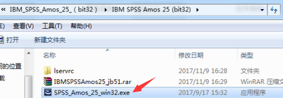 1、將winwin7分享的壓縮包解壓到本地,雙擊SPSS_Amos_25_win32.exe程序;