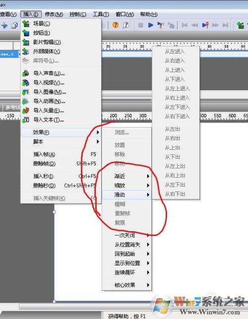 這個類別中主要包括漸進(Fade)、 縮放(Zoom)、 滑動(Slide)、 模糊(Blur) 、重復(fù)影格(Repeat Frames)、復(fù)原(restore)等分類。