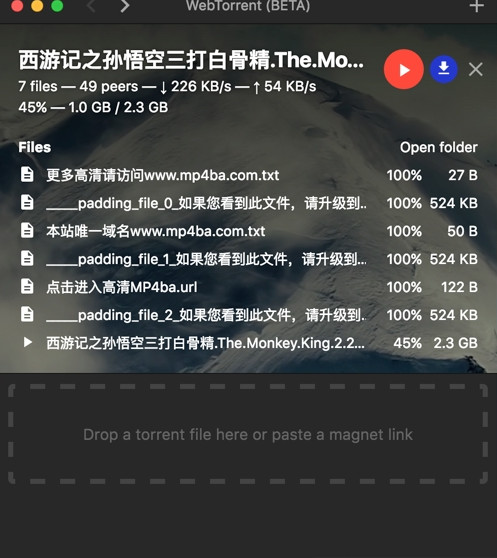 WebTorrent種子播放器綠色版是一款強(qiáng)大的BT種子在線播放器,該軟件具有下載速度快,播放流暢,對(duì)于一些只能通過下載后在觀看的影片來說是非常不錯(cuò)的一款工具,讓你邊下邊看!