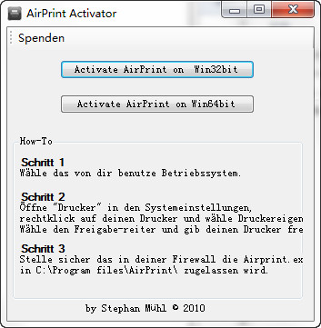 下載并運行AirPrint激活工具
