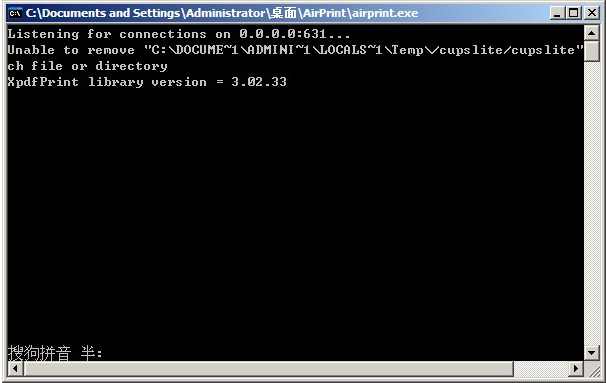 運行airprint.exe,32 bit Windows 到C:\Progame Files\Airprint 資料夾雙擊Airprint.exe運行; 64bit Windows 請到C:\Programe Files(X86)\AirPrint,會彈出命令窗口