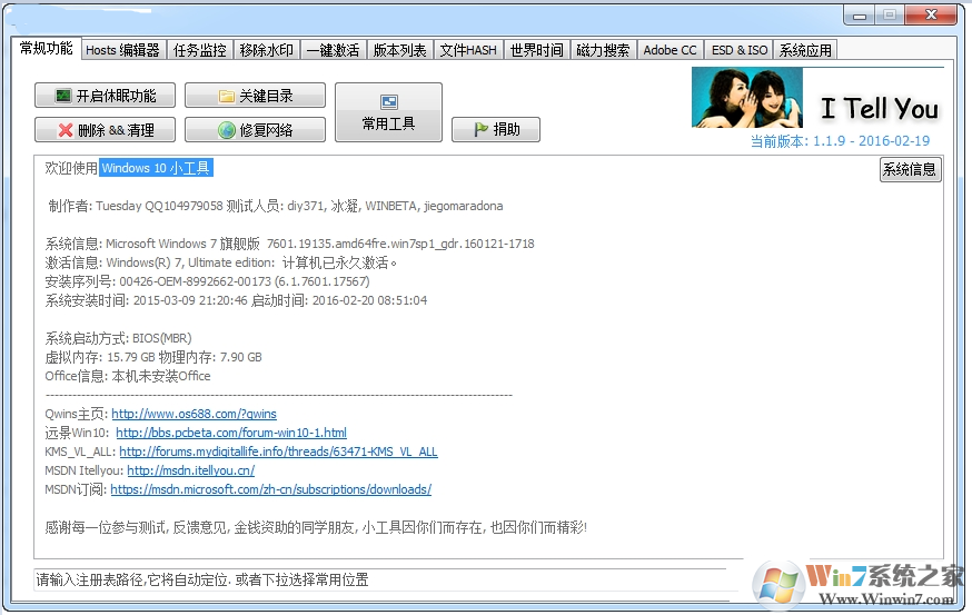 Qwins系統(tǒng)工具是一款實(shí)用的Win10小工具,軟件包含了系統(tǒng)信息查看、hosts編輯器、任務(wù)監(jiān)控、移除水印、文件hash等等非常多常用的功能!