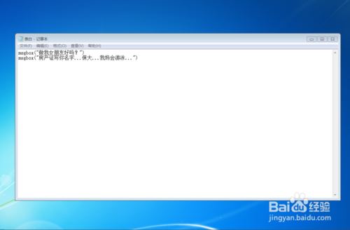 輸入代碼,不會編寫代碼的可以去網(wǎng)上查找,只需在百度輸入vbs代碼,就會有各種各樣的代碼,比如輸入: