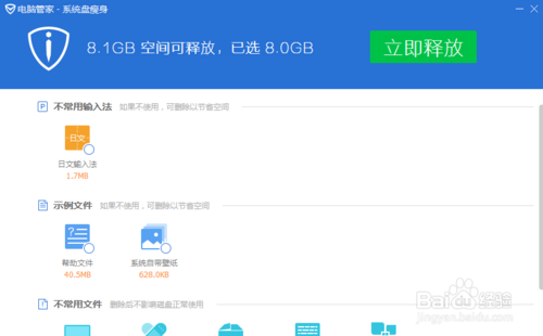 等待掃描, 掃描結(jié)束后可以看到自己的系統(tǒng)盤有多少垃圾,然后點擊立即釋放