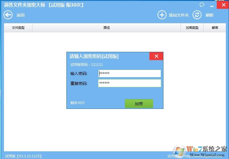 3、添加文件夾之后,會(huì)要求你輸入加密的密碼,確定加密完成;