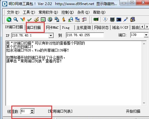 2、點擊端口掃描即可對主機進行輸入、端口的選擇、線程數(shù)的設(shè)置等;
