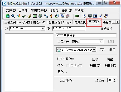 7、共享查找界面包括了各種IP的使用、共享目錄的查看,打開資源文件、注意事項等;