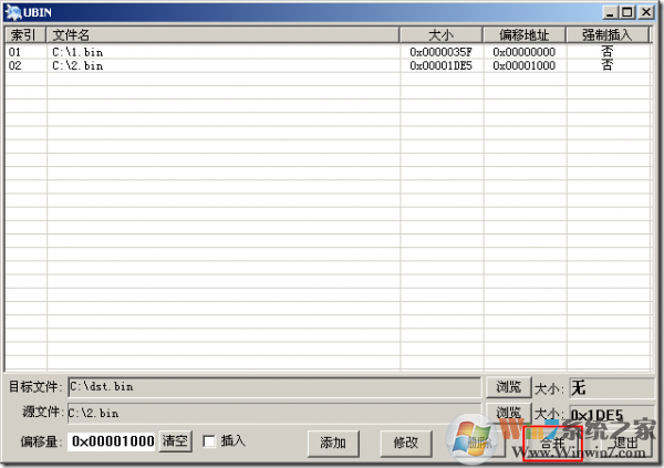 使用二進(jìn)制文件合并工具(UBIN.exe),這個小工具是以前在S3C2410上開發(fā)uCOS時做的,功能比較簡單,滿足一般的需求。