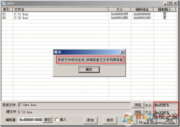 設(shè)置目標(biāo)文件為C:\dst.bin,然后點(diǎn)擊“合并”按鈕。