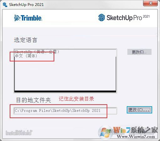 2、首先雙擊運(yùn)行"1.SketchUpPro-2021-0.exe"程序,選擇簡體中文語言,按默認(rèn)目錄進(jìn)行安裝;