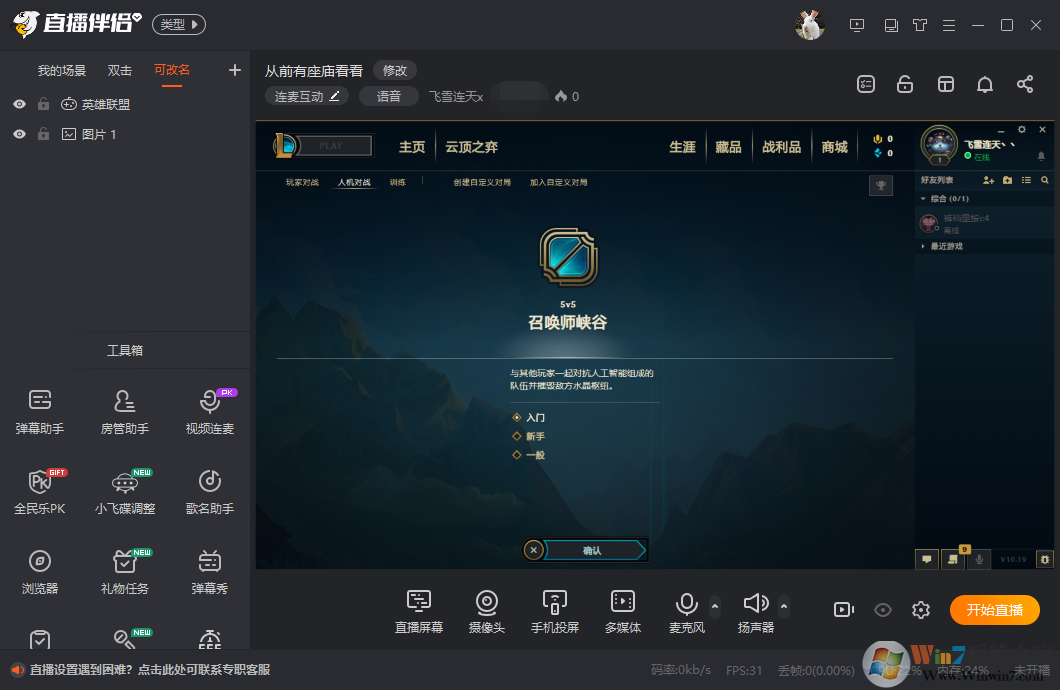 以英雄聯(lián)盟為例,游戲運(yùn)行的前提下,點(diǎn)擊“直播屏幕”選擇英雄聯(lián)盟的游戲窗口,再點(diǎn)擊“確認(rèn)添加”完成畫面捕捉