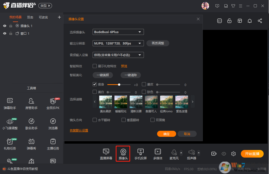 攝像頭可以選擇已連接的攝像頭設(shè)備,并且也支持添加第三方如YY伴侶的虛擬攝像頭,設(shè)置好各項(xiàng)參數(shù)后,點(diǎn)擊“確定”即可添加攝像頭。