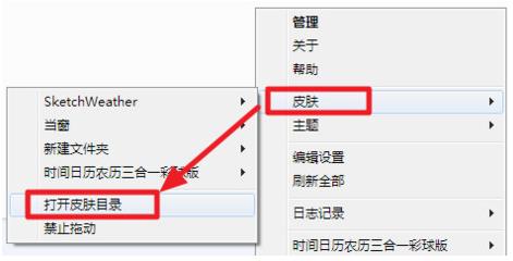 將下載的rar格式解壓到某個(gè)文件夾,然后右擊右下角的雨滴圖標(biāo),選擇【皮膚】-【打開(kāi)皮膚目錄】