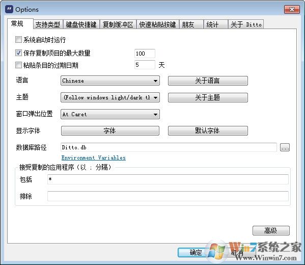 2、在打開(kāi)的ditto剪貼工具選項(xiàng)窗口中,點(diǎn)擊頂部的(快捷鍵),您可以看到激活ditto快捷鍵(ctrl+alt+、)。您可以自行修改快捷鍵,全局熱鍵。