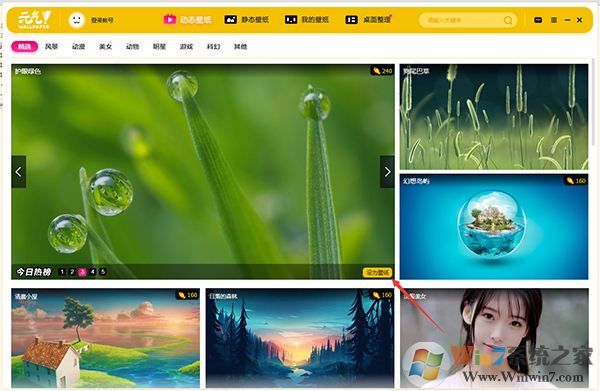 1、進(jìn)入元?dú)庾烂姹诩堒浖?,你可以直接選擇直接喜歡的壁紙?jiān)O(shè)置即可。