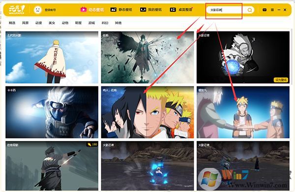3、搜索你喜歡的壁紙關(guān)鍵詞,例如搜索火影忍者,海賊王等。