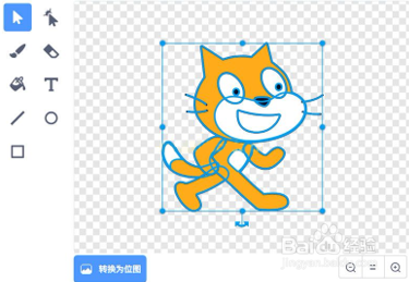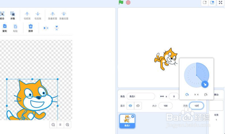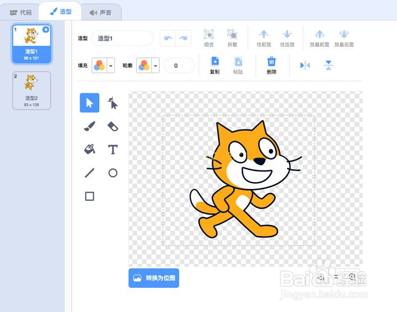 打開scratch3.0,選中一個角色,然后切換到造型選項卡(本例使用默認(rèn)角色小貓)。