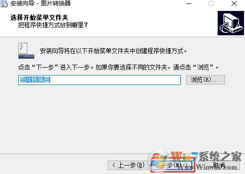 3、進(jìn)入選擇開始菜單文件夾界面,直接點(diǎn)擊下一步,如圖: