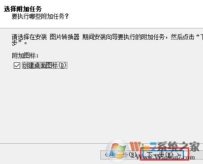 4、進(jìn)入附加任務(wù)界面,選擇創(chuàng)建桌面圖標(biāo),然后點(diǎn)擊下一步,如圖: