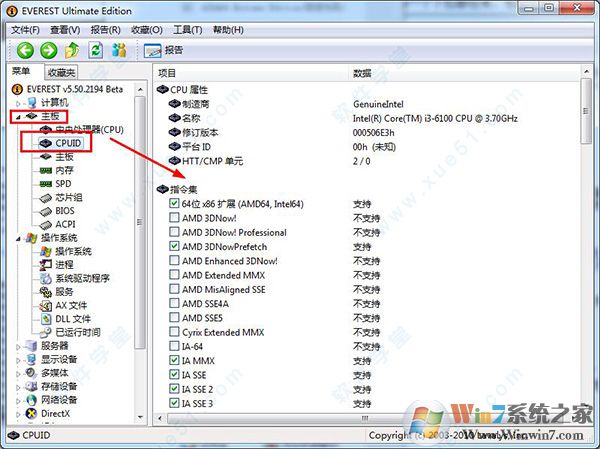 通過查看指令集可以判斷自己的CPU是否大強。其實是支持的指令越多,代表你的CPU越好。這些查看電腦硬件信息的菜單我就不多說了,大家可以自己點擊菜單里的選項去慢慢查看。