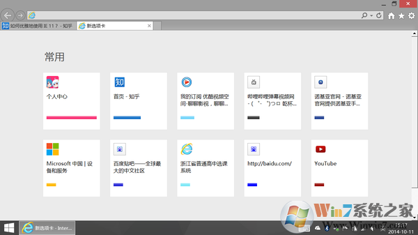 Internet Explorer 11(簡稱IE11),是繼IE10之后的新版本網(wǎng)頁瀏覽器,新版IE11相比較與IE10在瀏覽器的操作界面上差異并不大,但是在整體的性能上卻有非常大的改進。選項卡界面已經(jīng)移至底部,并且新增了Windows 8.1設(shè)備與Windows Phone同步標簽的功能。IE 11也開始支持WebGL,并允許網(wǎng)站創(chuàng)建單獨的動態(tài)磁貼模塊,讓用戶可以將其添加到開始屏幕上,獲得RSS更新。