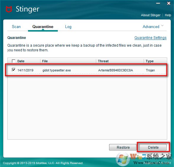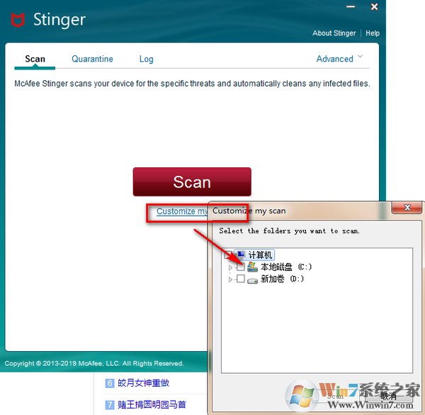 一、下載打開McAfee Stinger Raptor殺毒軟件,點擊SCAN下方的藍(lán)色案件進行選擇查殺盤