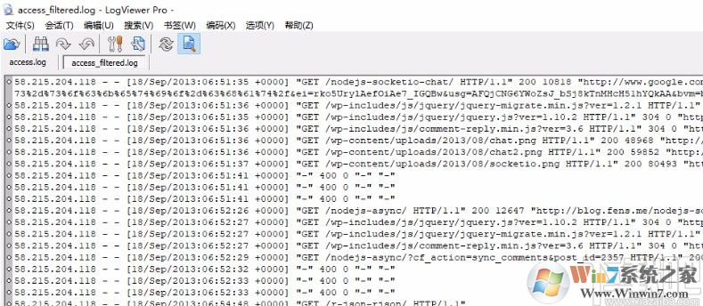 3.其中的編輯選項卡里面有復制、選擇、過濾日志的功能,主要就是使用過濾功能來篩選符合條件的日志內(nèi)容。
