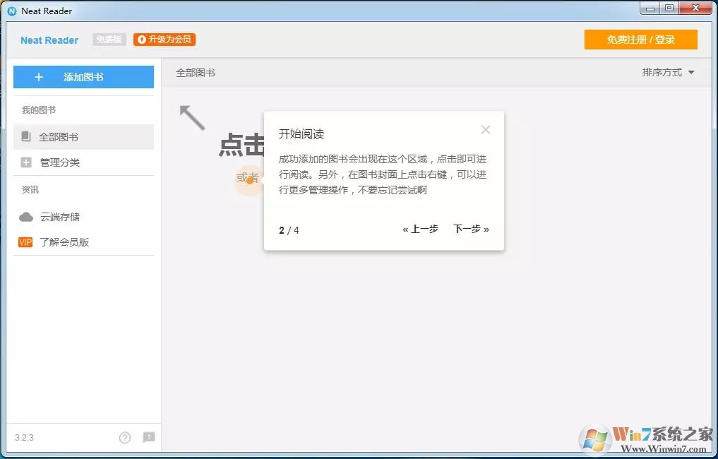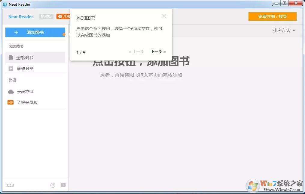1、添加圖書:點(diǎn)擊右上方添加圖書,選擇一個(gè)epub文件即可完成圖書的添加
