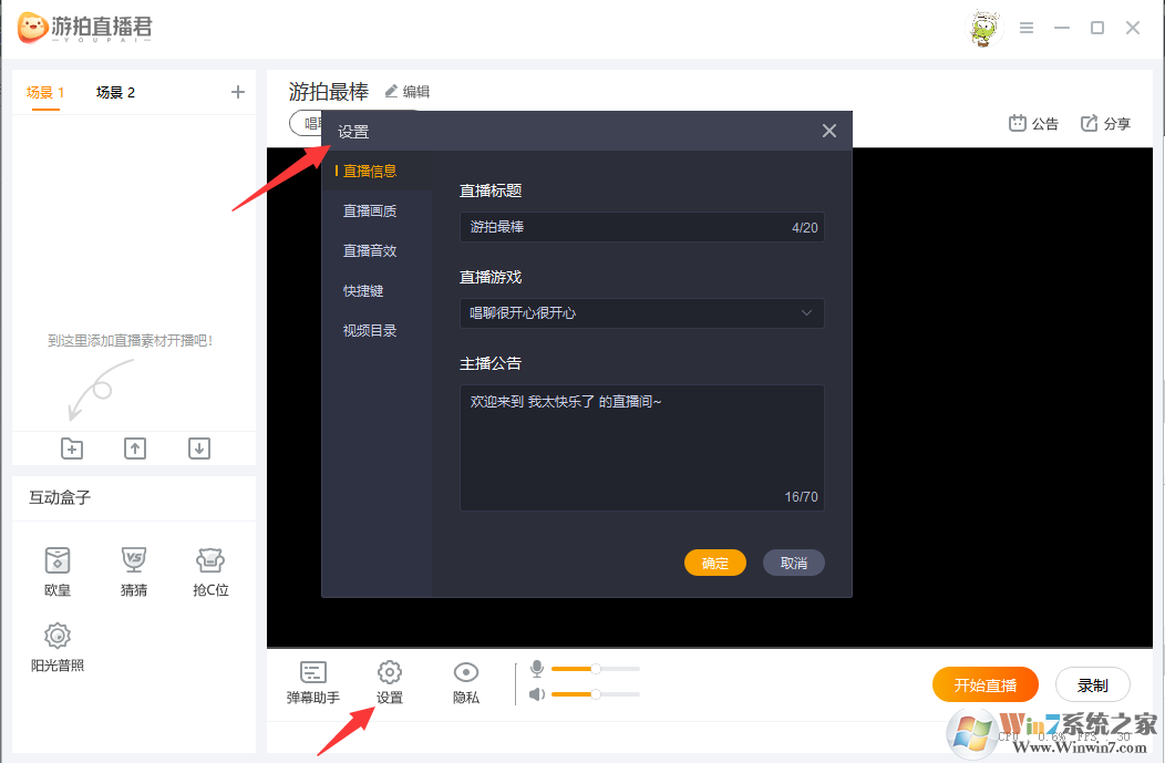 6、在設(shè)置中,編輯直播標(biāo)題 、直播游戲、主播公告等內(nèi)容