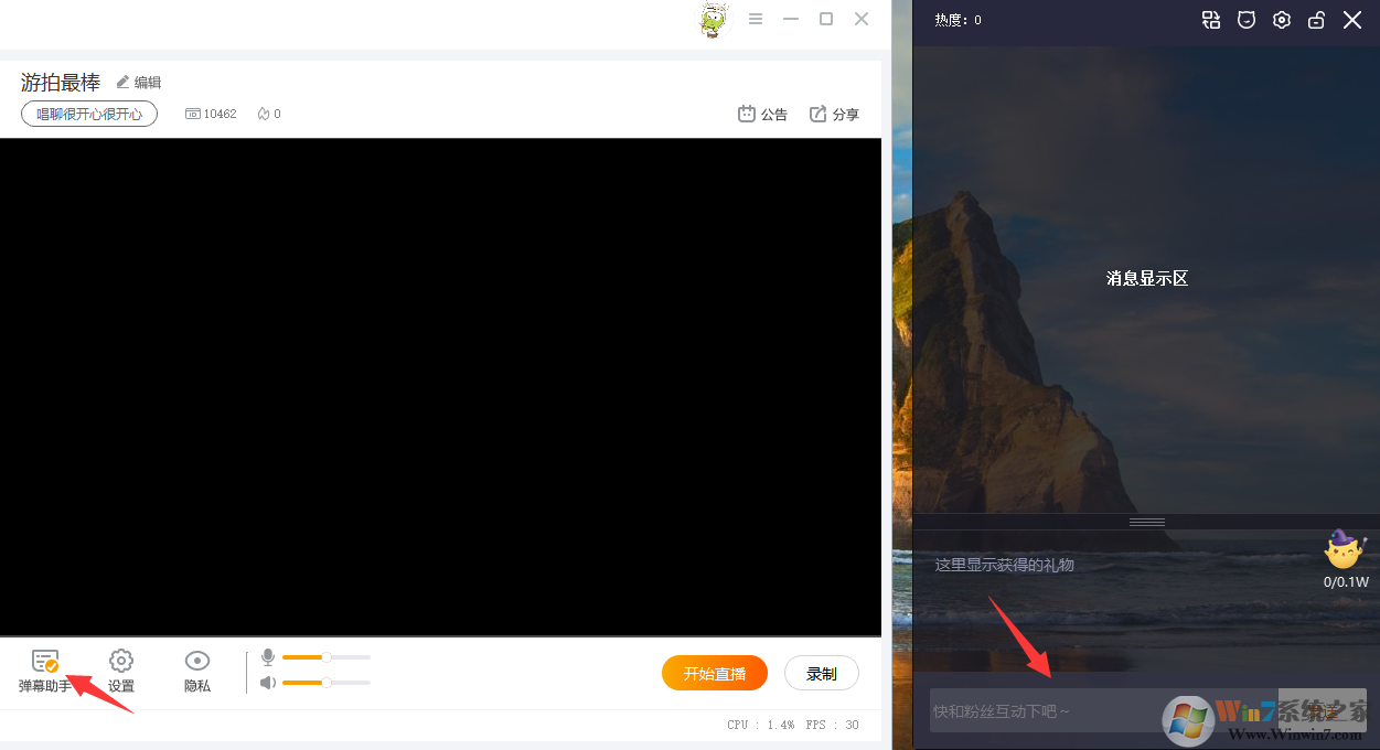 7、打開彈幕助手,就能看到直播間用戶發(fā)送的彈幕信息,也能夠進(jìn)行文字聊天互動(dòng)