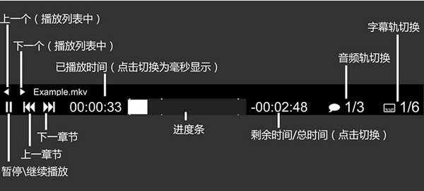 盡管MPV追求極簡主義,并且不提供真正的GUI,它在視頻底部會有一個用于基本控制播放的小型控制器。