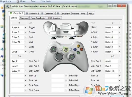 設(shè)定好了可測(cè)試看那x360ce手柄控制器的預(yù)覽圖和你的手柄控制器按鈕和推桿位是否一至。