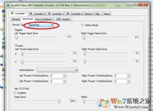 4、Advance-Device Type選GamePad關(guān)native mode。