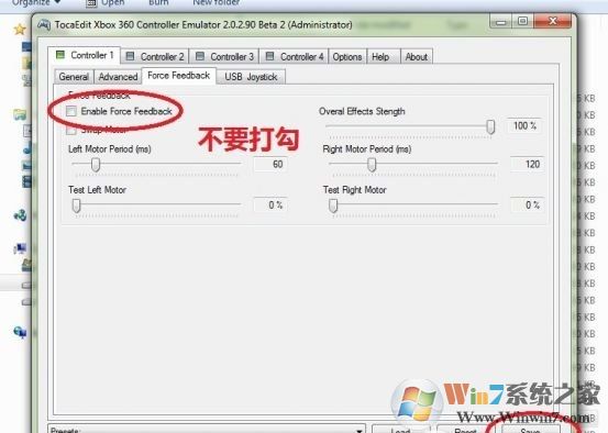 然后再看Force Feedback里的那個(gè)Enable Force Feedback有沒(méi)有大勾,如有得話請(qǐng)取消打勾,否則玩游戲時(shí)會(huì)彈出,設(shè)好后就可以按右下角的Save保存。