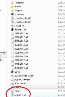 保存后你會(huì)看到游戲文件夾里生成多出x360ce.ini和xinput1_3.dll兩個(gè)文件。