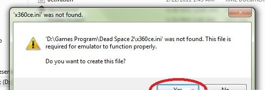 開(kāi)始會(huì)彈出題示x360ce.ini文件找不到,按yes到下一步。