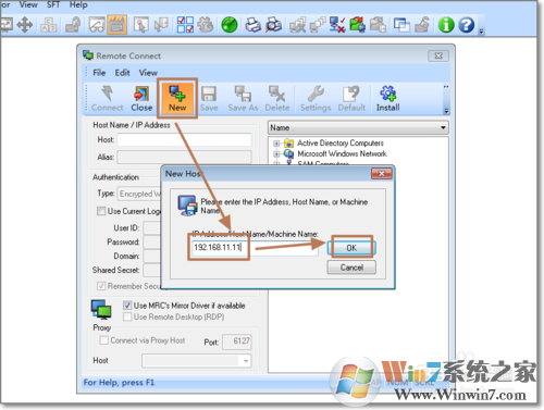 1、打開軟件點擊new來添加需要控制的新主機,如:局域網(wǎng)主機192.168.11.11管理員賬號administrator密碼固定