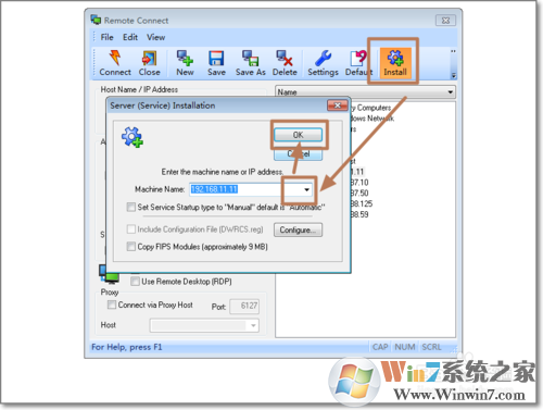 2、輸入完賬號和密碼之后,我們可以直接點擊connect連接控制電腦,第一次會自動安裝被控端服務(wù),我們也可以手工來安裝控制服務(wù)。