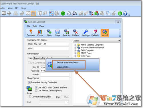 3、點擊“OK”后,會顯示正在安裝服務(wù)。被安裝電腦若禁止了默認(rèn)共享則會安裝失敗。