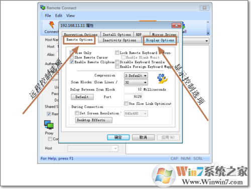 7、如遠(yuǎn)程控制選項,可以設(shè)置遠(yuǎn)程連接使用的端口號,顯示選項可以設(shè)置遠(yuǎn)程控制電腦的桌面顯示等。對于局域網(wǎng),網(wǎng)速優(yōu)質(zhì),不用多做其它設(shè)置即可。
