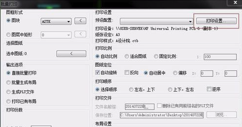 6、設(shè)置比例、打印順序,如果圖框選擇了偏移了還能設(shè)置偏移值;