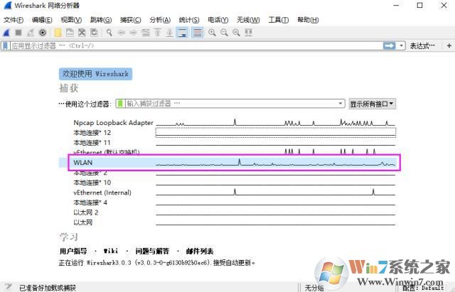 我們可以選擇有流量的網(wǎng)卡,比如使用無(wú)線就用無(wú)線網(wǎng)卡,本地鏈接就用本地網(wǎng)卡,接下來(lái),你可能看到了如下的畫面。